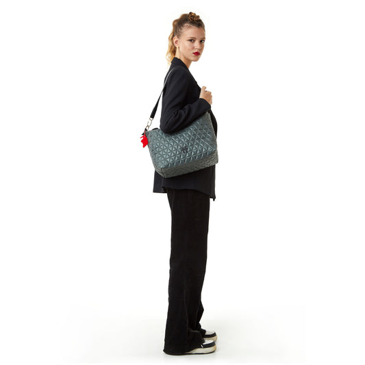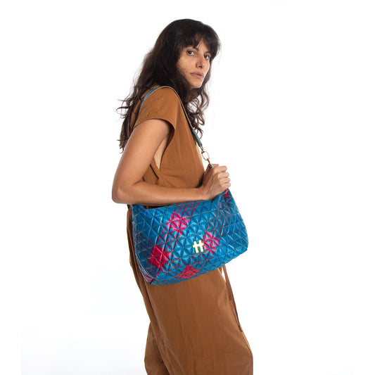 Bolsa Media Matelasse Tartan Blue Note Azul