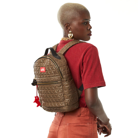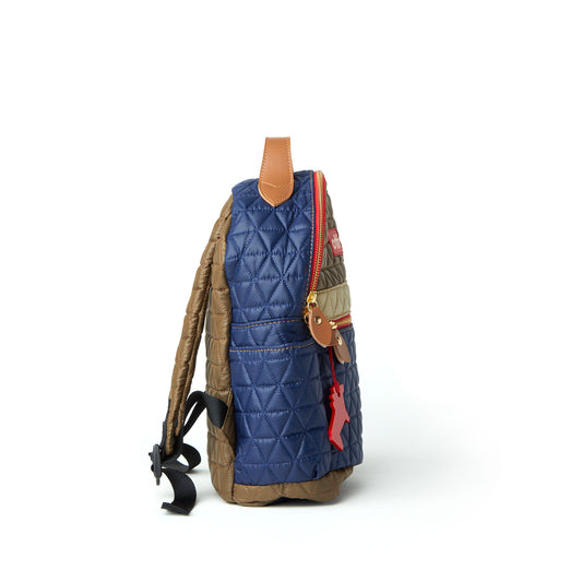 Mochila Pequena Matelassê Multicolor 03 Azul Marinho/ Cafe/ Khaki