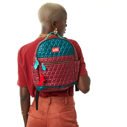 Mochila Pequena Matelassê Multicolor 05 Verde Petroleo/ Vinho
