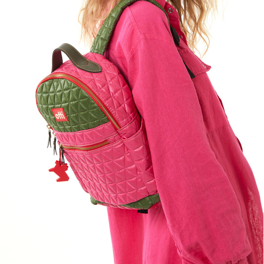 Mochila Pequena Matelassê Multicolor 04 Verde Equipamento/ Chiclete