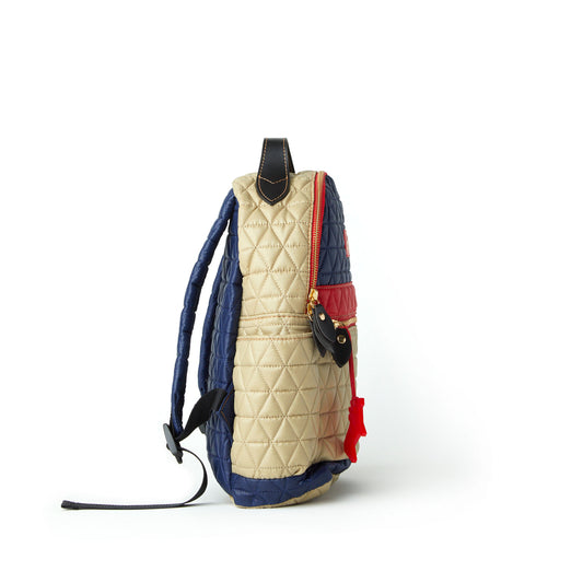 Mochila Pequena Matelassê Multicolor 02 Azul Marinho/ Khaki/ Vermelho