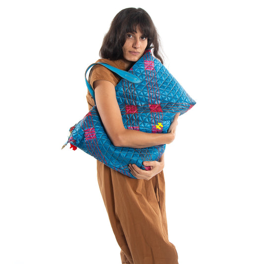 Bolsa Weekender Matelasse Tartan Blue n Azul